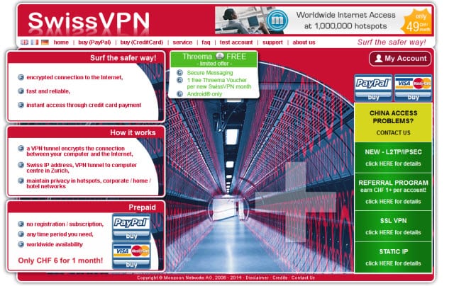 具有无限和计量帐户。以及对 PPTP 和 L2TP 协议的支持。